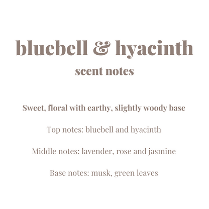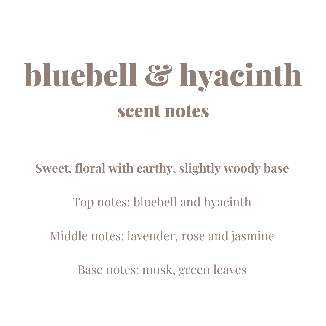 bluebell & hyacinth is part of our spring collection - fresh scents to celebrate the return of lighter days and celebrate new florals and blossoms.